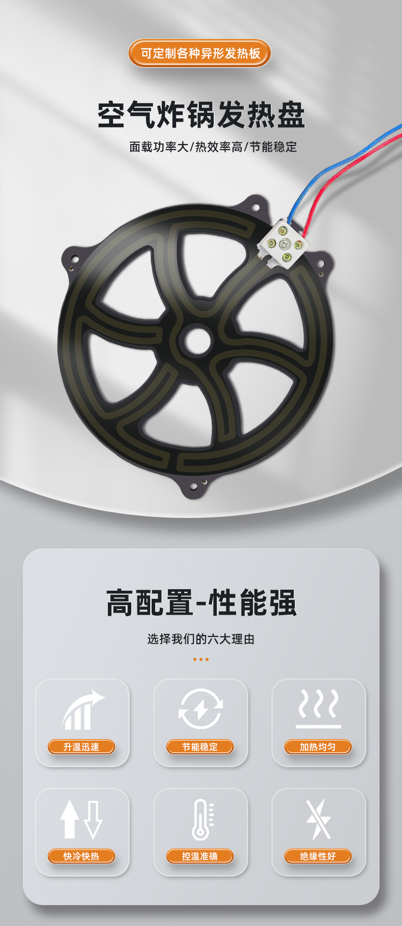 ②發(fā)熱快,熱效率高:發(fā)熱板中絕緣層厚度僅為0.02mm,熱阻遠(yuǎn)小于傳統(tǒng)發(fā)熱管中4mm的鎂粉層,故發(fā)熱速度快,熱效率可達(dá)95%以上。