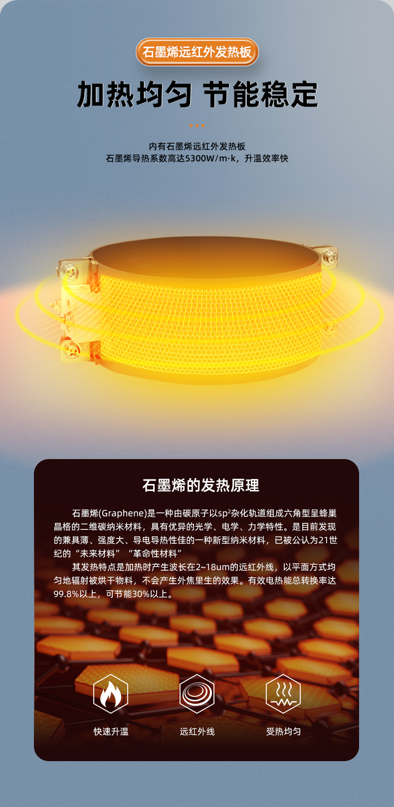 1.遠紅外:石墨烯2-18um波長,對水分形成匹配吸收。
